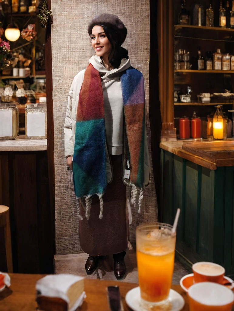 マネキン部分を女性に修正・生成して背景をカフェに変えて制作。