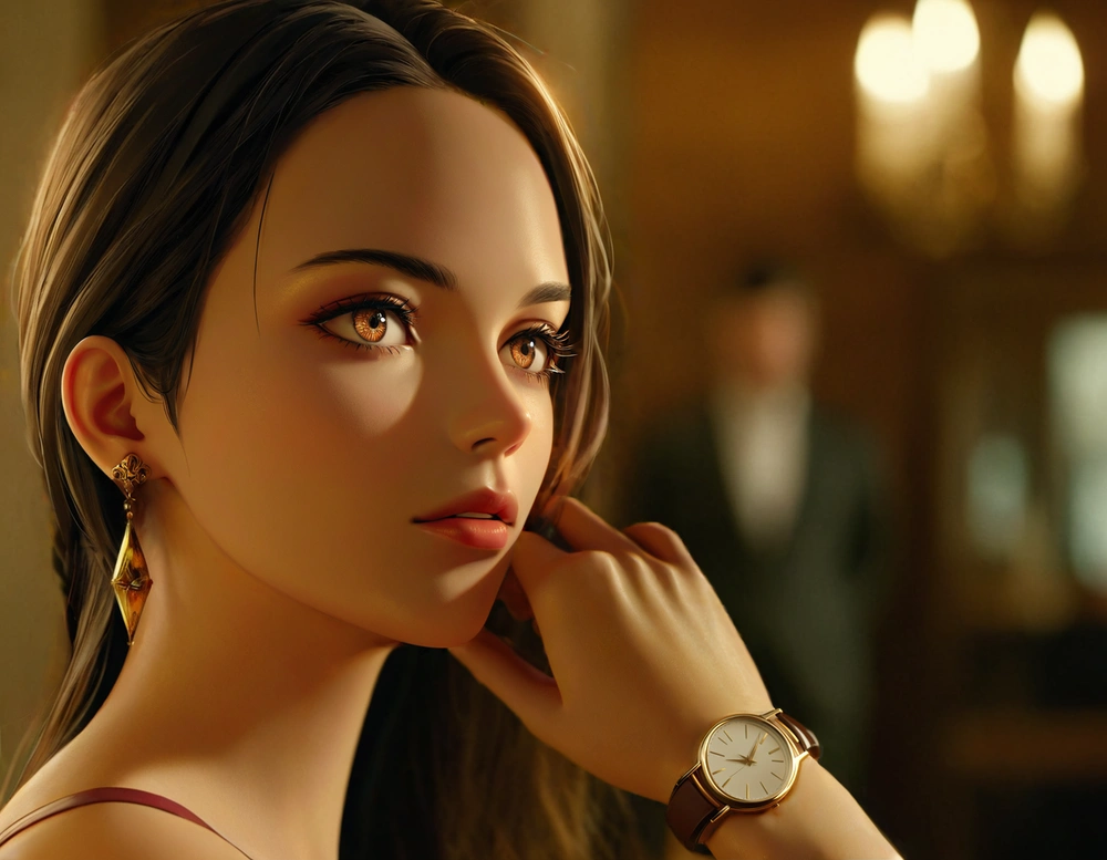女性を3Dイラスト風にして腕時計にフォーカスした作品。
